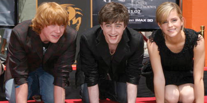 Rupert Grint, Daniel Radcliffe, and Emma Watson are honored with the “Hand, Foot, and Wand Ceremony” in Hollywood.
